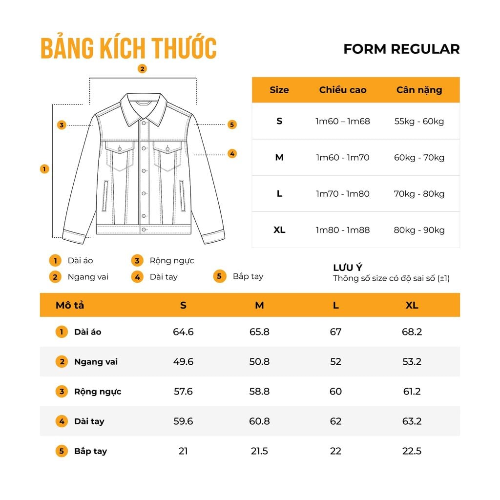 | Dài áo (cm) | 58 | 60 | 62 | 64 |