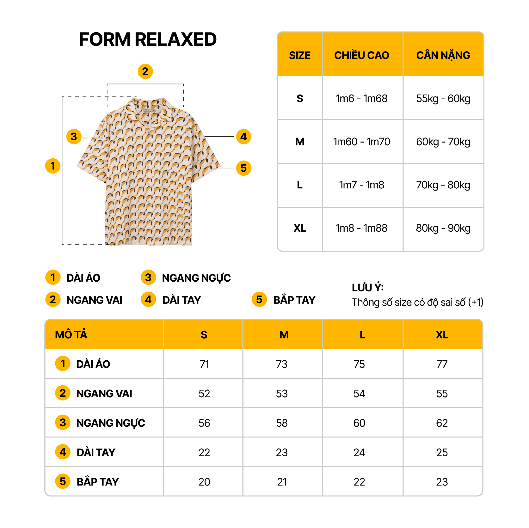 Dài áo (cm) | 69 | 71 | 73 | 75 |