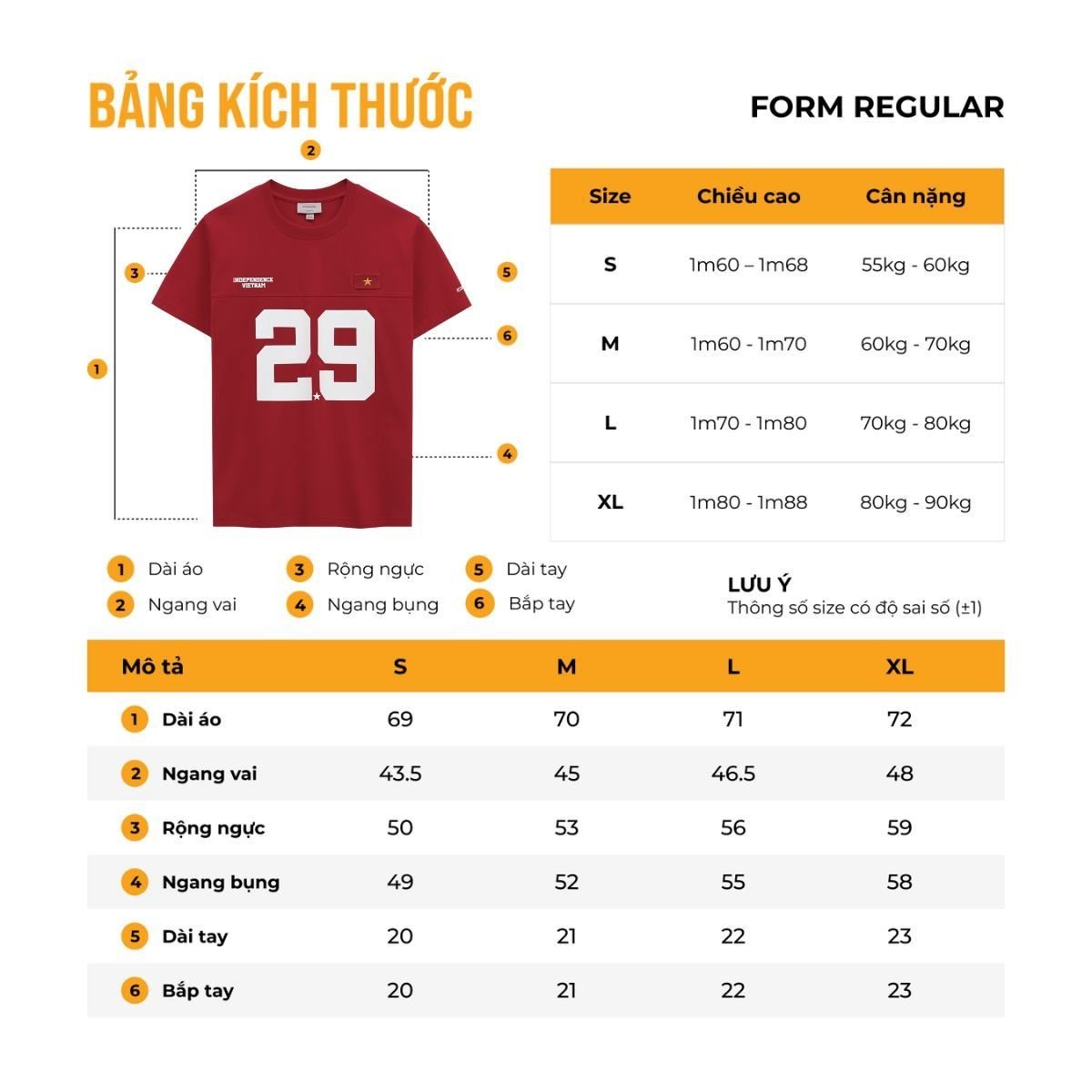 Dài áo (cm) | 68 | 69 | 70 | 71 |