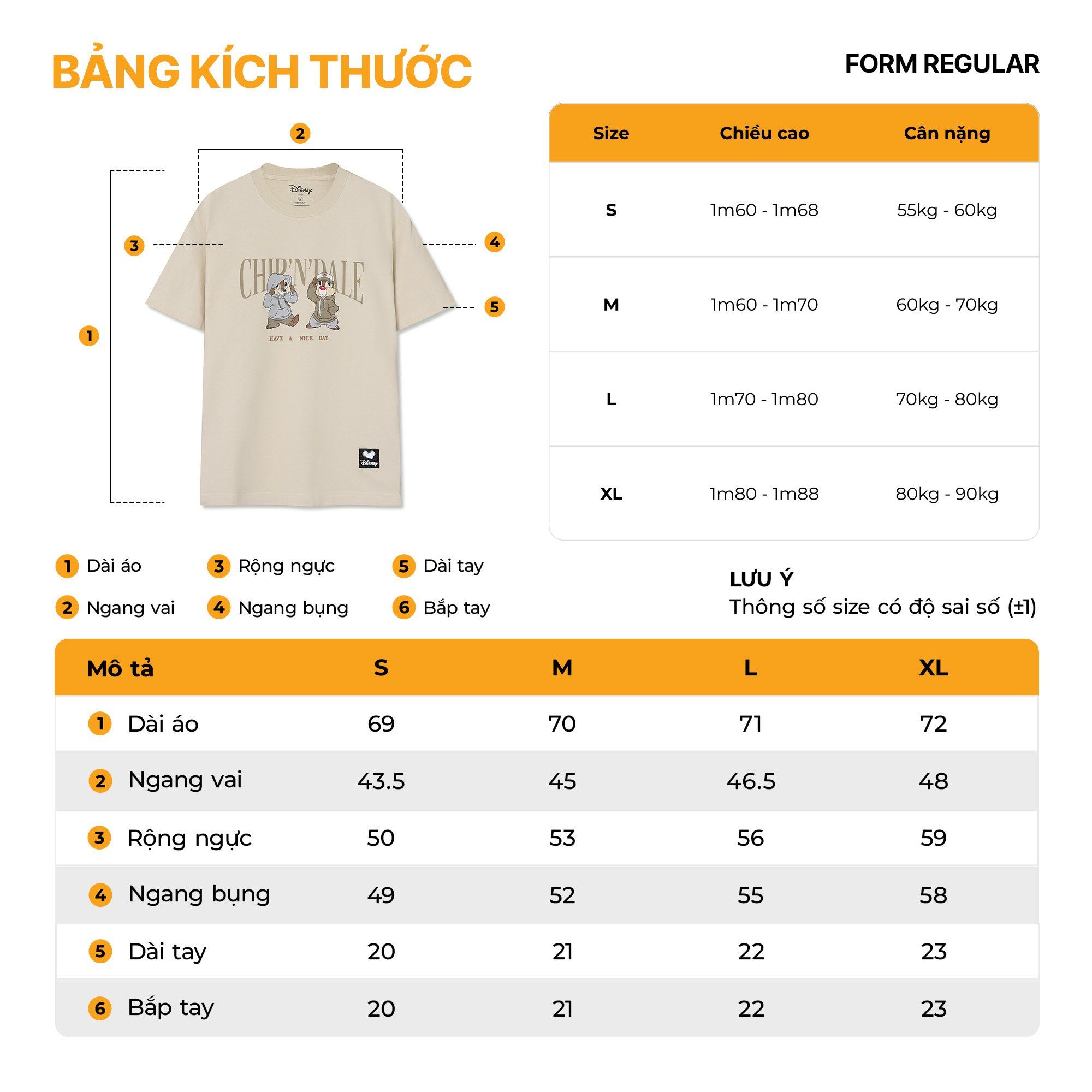 | Ngang vai (cm) | 43.5 | 45 | 46.5 | 48 |