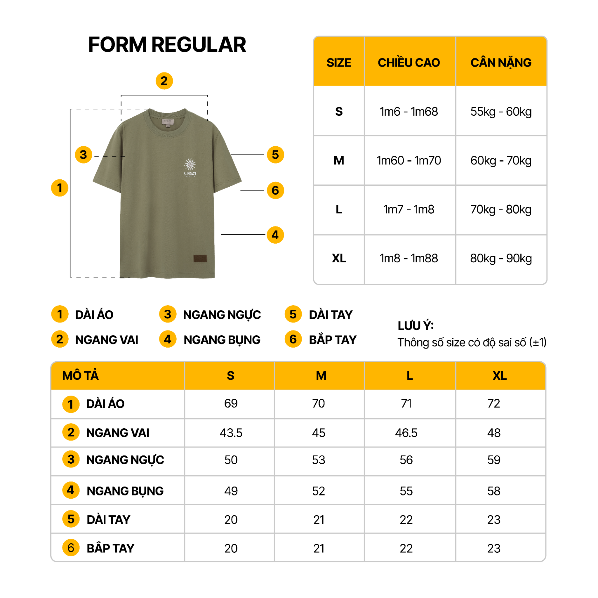 | Dài áo (cm) | 68 | 69 | 70 | 71 |